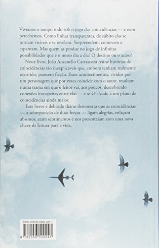 Todo mundo tem uma coincidência para contar. Seja uma pequena troca de olhares entre desconhecidos que se reconhecem de passagem ou um nome que teima em aparecer no seu caminho. Este livro é permeado por esses tipos de coincidências. As histórias, vividas por um personagem que, por vezes, confunde-se com o próprio autor, vão sendo contadas em meio a pequenos momentos carregados de significado. Com delicadeza e maestria, Diário das coincidências tece uma trama de pequenas histórias, em que o leitor, ao puxar um fio, vai descobrindo conexões e desvendando a beleza do dia a dia. Este breve diário expõe a leveza do destino e concede uma chave de leitura para o inexplicável cotidiano.