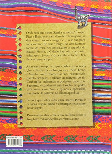 Embarque nessa nova aventura de Pilar e conheça as tradições e lendas da civilização inca! Onde será que o gato Samba se meteu? É o que Pilar e Breno precisam descobrir! Num pulo, os dois entram na rede mágica e… lá se vão para uma aventura de tirar o fôlego. No alto das montanhas do Peru, eles desbravarão os segredos de Machu Picchu, a Cidade Sagrada, e tentarão evitar que a jovem Yma, escolhida do deus Sol, fique ali para sempre. Ao mesmo tempo em que conhecem as tradições e lendas da civilização inca, Pilar, Breno e Samba vivem momentos tão inesquecíveis quanto perigosos – trilham as margens do rio Urubamba, enfrentam o poderoso Sacerdote Supremo, escondem-se nos templos de pedra, deliciam-se com choclos e quinoa e aprendem um monte de palavras no idioma quéchua. Essa edição traz dicionário de palavras inventadas por Pilar, um pequeno dicionário de quéchua (o idioma dos incas), mapa de Machu Picchu e da trilha inca e mapa da América do Sul. E mais: a partitura do “Samba do Samba”, composto por Pilar e Breno.