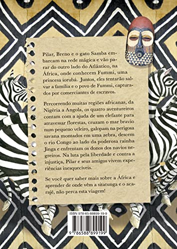 Na luta pela liberdade e contra a injustiça, Pilar e seus amigos vão parar do outro lado do Atlântico. Nessa aventura eles aprendem muito sobre a cultura africana. Pilar, Breno e o gato Samba embarcam na rede mágica e chegam ao continente africano, onde conhecem Fummi, uma princesa iorubá. Juntos, eles tentarão salvar sua família e seu povo, capturados por comerciantes de escravos. Viajando da Nigéria a Angola, Pilar e seus amigos entram em contato com a história da África, seus animais e sua cultura. Os quatro aventureiros contam com a ajuda de um elefante para atravessar florestas, navegam o mar bravio num pequeno veleiro, galopam na perigosa savana montados em uma zebra, descem o rio Congo ao lado da poderosa rainha Jinga e enfrentam os donos dos navios negreiros. Indicado para leitores a partir de 9 anos.