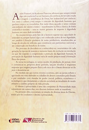 Uma das conquistas mais vulneráveis da Humanidade, em nossos dias, o direito à privacidade é tratado nesta obra por 18 autores de renome, juristas, professores e conferencistas. Abordam os mais diversos aspectos da privacidade, em relação à dignidade humana; às relações familiares; ao gerenciamento do poder familiar; à preservação da imagem; à liberdade de expressão-comunicação; a privacidade na sociedade, na mídia e na justiça; a crise do direito da comunicação social; o direito da empresa à vida privada e seus reflexos no direito falimentar; intervenção dos empregadores na vida pessoal do empregado; o direito do médico de sigilo profissional, em razão da privacidade do paciente.