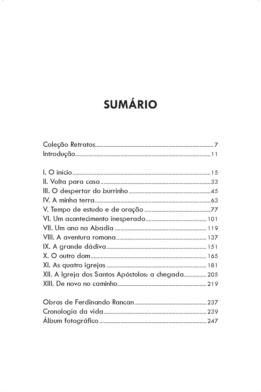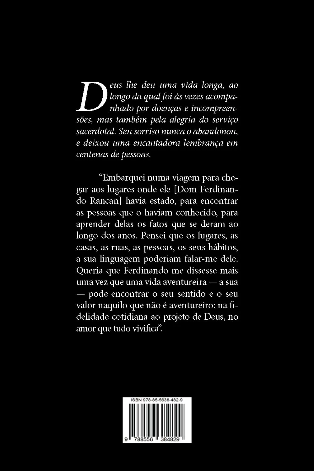 “Embarquei numa viagem para chegar aos lugares onde ele [Dom Ferdinando Rancan] havia estado, para encontrar as pessoas que o haviam conhecido, para aprender delas os fatos que se deram ao longo dos anos. Pensei que os lugares, as casas, as ruas, as pessoas, os seus hábitos, a sua linguagem poderiam falar-me dele. Queria que Ferdinando me dissesse mais uma vez que uma vida aventureira — a sua — pode encontrar o seu sentido e o seu valor naquilo que não é aventureiro: na fidelidade cotidiana ao projeto de Deus, no amor que tudo vivifica”.