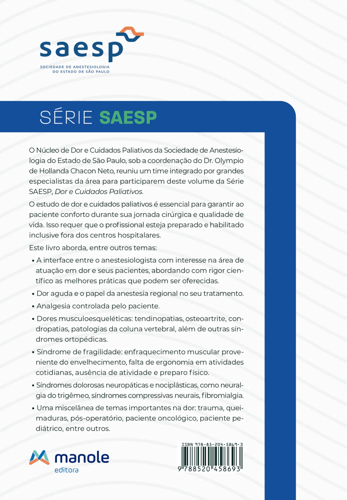 O Núcleo de Dor e Cuidados Paliativos da Sociedade de Anestesiologia do Estado de São Paulo, sob a coordenação do Dr. Olympio de Hollanda Chacon Neto, reuniu um time integrado por grandes especialistas da área para participarem deste volume da Série SAESP, Dor e Cuidados Paliativos.