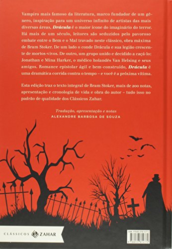 Um pavoroso embate entre bem e mal que seduz milhares de leitores há mais de um século Fonte de inúmeras adaptações para telas e palco, inspiração para músicos, escritores e artistas de todas as áreas, Drácula é um ícone incontestável e obra-máxima de Bram Stoker. De um lado o conde Drácula – o mais famoso vampiro da literatura – e sua legião crescente de mortos-vivos. De outro, um grupo unido e decidido a caçá-lo: Jonathan e Mina Harker, o médico holandês Van Helsing e seus amigos. Romance epistolar ágil e bem-construído, esse livro enredará também você nessa dramática corrida contra o tempo. Essa edição traz o texto integral de Bram Stoker, centenas de notas, apresentação e cronologia de vida e obra do autor, tudo isso no padrão de qualidade dos Clássicos Zahar. A versão impressa apresenta capa dura e acabamento de luxo.