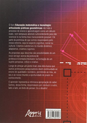 O livro Educação matemática e tecnologia: articulando práticas geométricas não trata o processo de ensino e aprendizagem como um cálculo exato, nem tampouco abstrato suficientemente para não vivenciá-lo na forma mais transcendente possível. Ele parte da premissa de que somos responsáveis pelo nosso entorno, seja no aspecto cognitivo, social ou cultural. Estamos submersos no mundo dinâmico; adaptamos, criamos e agimos. As propostas aqui descritas são possibilidades de um novo ver/agir acerca da postura de professor/orientador/mediador na formação de um sujeito perspicaz, crítico e criativo. Longe de almejar um ponto final, esta obra busca que outros professores pesquisadores deem continuidade ao ensino de qualidade e solidário, permitindo ao meu, ao seu e ao nosso mundo a oportunidade do prazer no conhecimento. O aprender representa a intrínseca apropriação do saber. Somos, dessa forma, responsáveis por conduzir o outro, lado a lado, ao êxito do pensar. Eis o desafio!