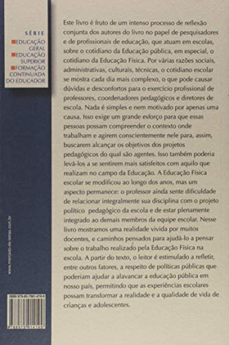 Este livro é fruto de um intenso processo de reflexão conjunta dos autores do livro no papel de pesquisadores e de profissionais de educação, que atuam em escolas, sobre o cotidiano da Educação pública, em especial, o cotidiano da Educação Física. Por várias razões sociais, administrativas, culturais, técnicas, o cotidiano escolar se mostra cada dia mais complexo, o que pode causar dúvidas e desconfortos para o exercício profissional de professores, coordenadores pedagógicos e diretores de escola. Nada é simples e nem motivado por apenas uma causa. Isso exige um grande esforço para que essas pessoas possam compreender o contexto onde trabalham e agirem conscientemente nele para, assim, buscarem alcançar os objetivos dos projetos pedagógicos do qual são agentes. Isso também poderia levá-los a se sentirem mais satisfeitos com aquilo que realizam no campo da Educação. A Educação Física escolar se modificou ao longo dos anos, mas um aspecto permanece: o professor ainda sente dificuldade de relacionar integralmente sua disciplina com o projeto político pedagógico da escola e de estar plenamente integrado ao demais membros da equipe escolar. Nesse livro mostramos uma realidade vivida por muitos docentes, e caminhos pensados para ajudá-lo a pensar sobre o trabalho realizado pela Educação Física na escola.