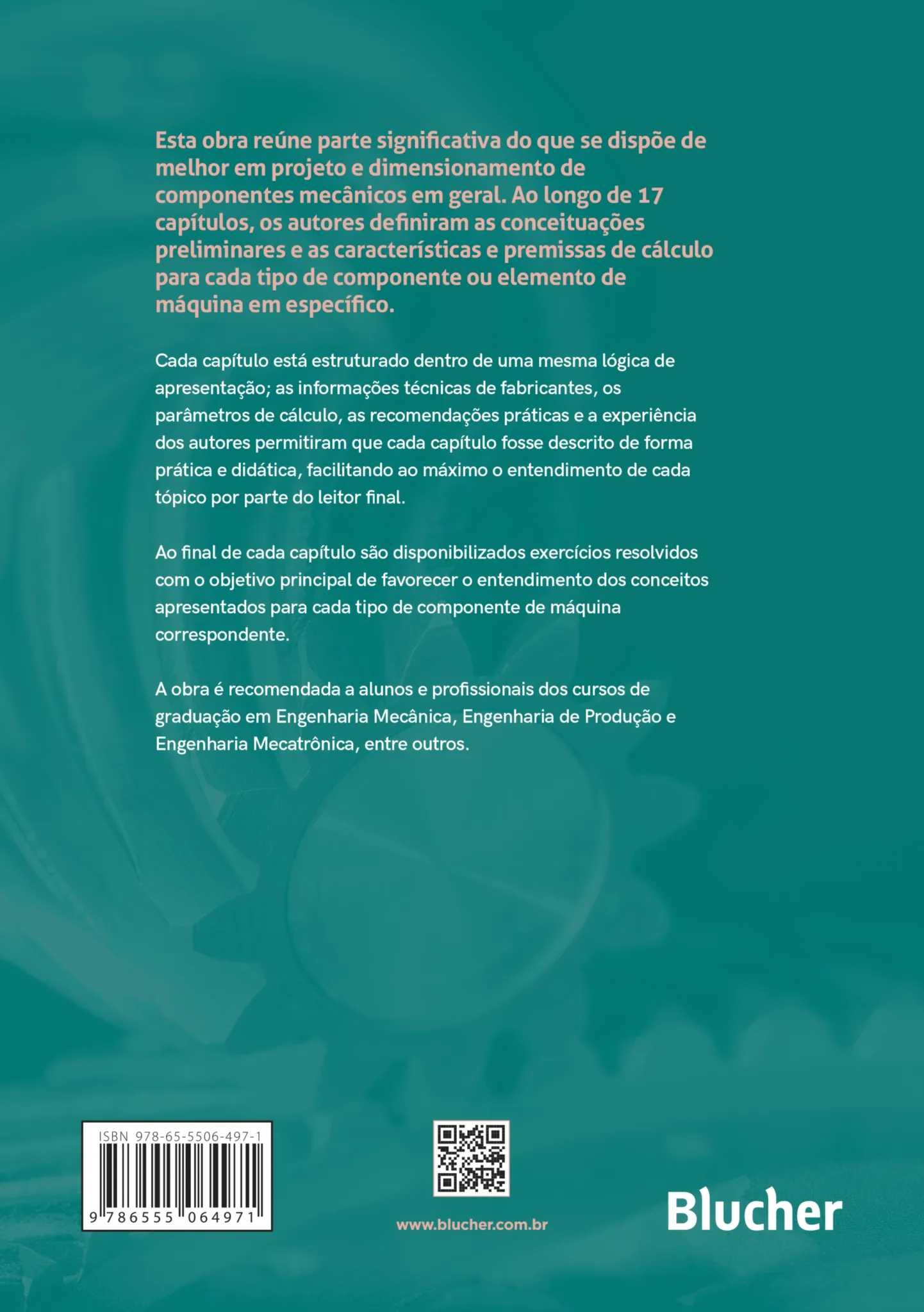 Esta obra reúne parte significativa do que se dispõe de melhor em projeto e dimensionamento de componentes mecânicos em geral. Ao longo de 17 capítulos, os autores definiram as conceituações preliminares e as características e premissas de cálculo para cada tipo de componente ou elemento de máquina em específico.