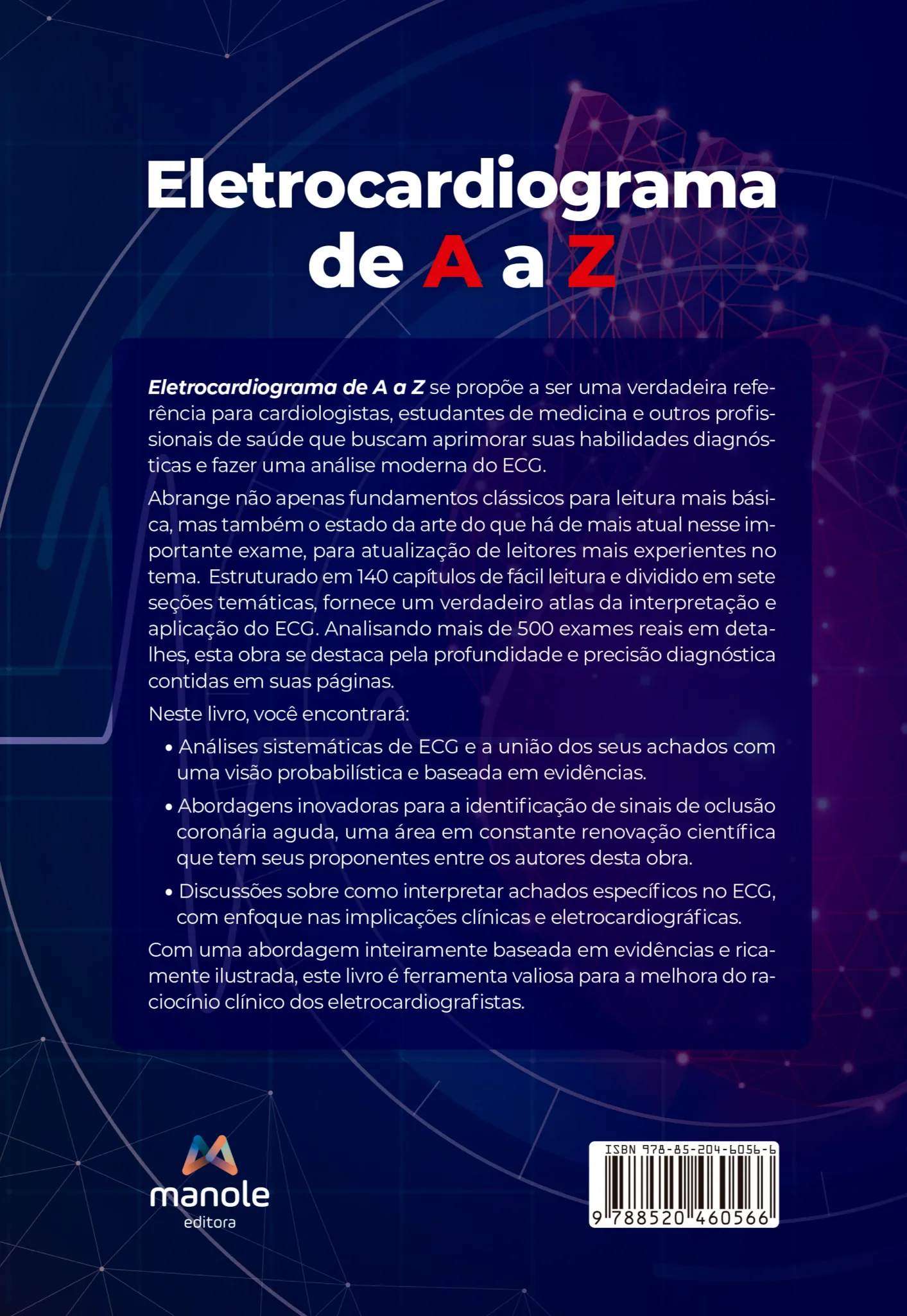 Propõe-se a ser uma verdadeira referência para cardiologistas, estudantes de medicina e outros profissionais de saúde que buscam aprimorar suas habilidades diagnósticas e fazer uma análise moderna do ECG. Com abordagem inteiramente baseada em evidências e ricamente ilustrada, este livro será uma ferramenta inestimável na melhora do raciocínio clínico dos eletrocardiografistas.