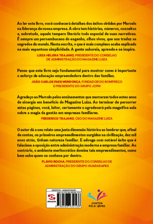Penso que este livro seja fundamental para mostrar como é importante o esforço de educação empreendedora dentro das famílias.