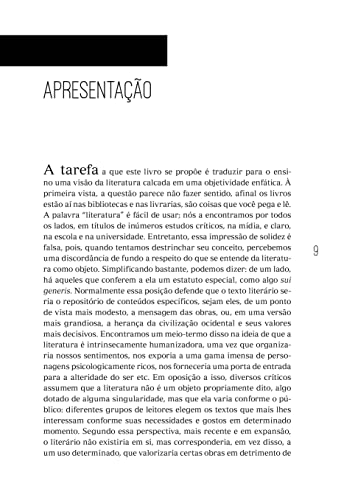 O ensino de literatura passa hoje por uma grave crise. Paralelamente à crescente perda de espaço curricular na educação básica, as obras literárias têm sido deixadas em se-gundo plano ou simplesmente abandonadas em sala de aula. A dinâmica dos cursinhos e vestibulares adentra a escola, projeta uma imagem distorcida da literatura e burocra-tiza o contato com os objetos. Já os estilos de época se antecipam à leitura, controlam o campo conceitual das obras e acabam por prescindir dos próprios materiais que bus-cam descrever. O cenário não é necessariamente mais auspicioso na universidade. Não bastasse a constante substituição das disciplinas específicas de literatura por conteú-dos gerais da área de educação — que pouco ou nada têm a dizer sobre os estudos literários —, os cursos de Letras mostram-se cada vez mais interessados em teoriza-ções que devem ser mecanicamente aplicadas às obras. Tudo isso afasta o aluno da li-teratura. Ensinando literatura: a sala de aula como acontecimento oferece uma alternativa a esse estado de coisas. Ao valorizar a experiência da leitura e o caráter processual da inter-pretação, o livro insiste na literatura como materialidade enfática que solicita um mo-vimento particular e produtivo para a elaboração de hipóteses de leitura. Por incrível que pareça, a sala de aula é um ambiente bastante propício para a construção da ime-diaticidade como procedimento de leitura, o que supõe uma relação com o caráter sin-gular dos objetos. Não é gratuito, portanto, o gerúndio do título do volume. Além de enfatizar o objeto, Ensinando literatura não apenas concebe a sala de aula como acon-tecimento, mas convida o leitor a converter em acontecimento a sua própria leitura.