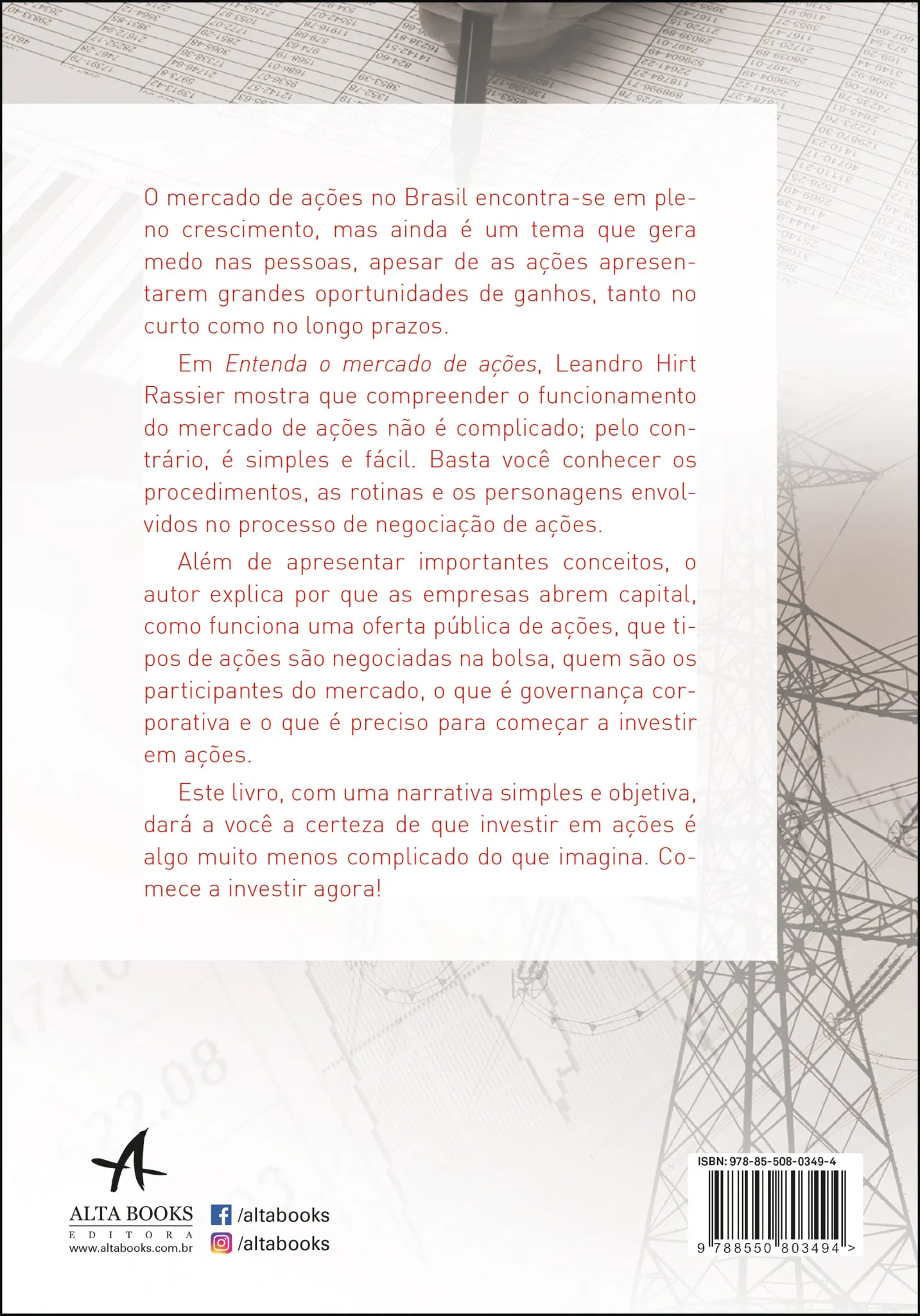 Além de apresentar importantes conceitos, o autor explica por que as empresas abrem capital, como funciona uma oferta pública de ações, que tipos de ações são negociadas na bolsa, quem são os participantes do mercado, o que é governança corporativa e o que é preciso para começar a investir em ações.