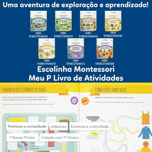 As crianças descobrem a natureza com atividades divertidas e criativas de acordo com o Método Montessori. Este livro está repleto de jogos e atividades criativas e divertidas desenvolvidas de acordo com o método Montessori. Por meio de labirintos, jogos de pré-escrita, reconhecimento de cores e formatos e adesivos correspondentes, as crianças podem aprender muitas coisas novas e interessantes sobre as estações e suas características diferentes enquanto desenvolvem uas habilidades cognitivas.