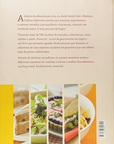 Essencial – A arte da gastronomia sem fogão leva o leitor a descobrir maneiras novas e deliciosas de cozinhar. E o mais inusitado, sem precisar de fogão! Através de técnicas da alimentação viva, como desidratação, fermentação e marinadas, os autores ensinam cardápios completos, desde entradas até sobremesas, além de bebidas, sopas, saladas e patês, tudo com muito sabor e sofisticação