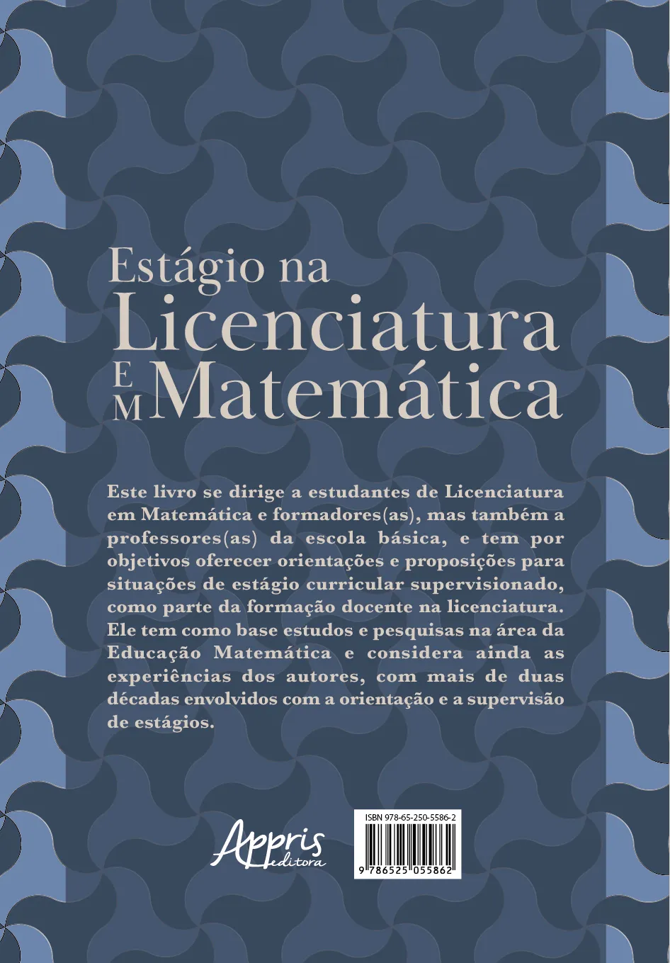 Este livro se dirige a estudantes de Licenciatura em Matemática e formadores(as), mas também a professores(as) da escola básica, e tem por objetivos oferecer orientações e proposições para situações de estágio curricular supervisionado, como parte da formação docente na licenciatura. Ele tem como base estudos e pesquisas na área da Educação Matemática e considera ainda as experiências dos autores, com mais de duas décadas envolvidos com a orientação e a supervisão de estágios.