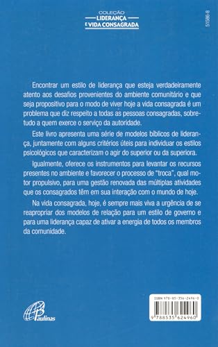 Um dos problemas que a vida religiosa consagrada enfrenta hoje é o da escolha de um estilo de liderança atento aos desafios provenientes do ambiente comunitário e que seja propositivo no modo de enfrentar os desafios da realidade atual. Este livro quer ajudar na solução deste problema. Apresenta uma série de modelos bíblicos da liderança, juntamente com alguns critérios úteis para individuar os estilos psicológicos que caracterizam o agir do coordenador e da coordenadora.Oferece instrumentos para identificar os recursos presentes no ambiente e favorecer o processo de “troca”, qual motor propulsivo, para uma gestão renovada das múltiplas atividades que os religiosos têm em sua interação com o mundo de hoje.Na vida consagrada, hoje, é sempre mais viva a urgência de se reapropriar dos modelos de relação para um estilo de governo e para uma liderança capaz de ativar a energia de todos os membros da comunidade, em vista de uma missão sempre mais eficaz, no mundo pós-moderno./n