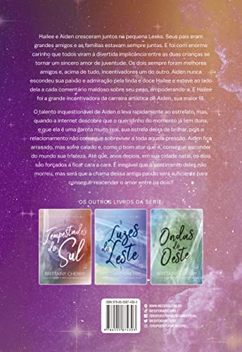 Terminar com seu namorado do ensino médio é uma coisa, mas terminar com o maior astro de Hollywood é algo completamente diferente. Em Estrelas do Norte, último volume da série Bússola, de Brittainy Cherry, vamos nos apaixonar pela história de amor digna de cinema de Hailee e Aiden. Hailee Jones é apaixonada por Aiden Walters desde que os dois eram crianças e ficavam deitados na grama observando juntos as estrelas do Norte. Ele foi o primeiro amor dela, e ela, o dele. Quando Aiden conseguiu seu primeiro papel como ator, era Hailee quem estava ao seu lado, e ela podia jurar que os dois ficariam juntos para sempre. Mas as coisas mudam quando Aiden vira um astro de Hollywood e todos os holofotes se voltam para sua vida. Desde pequena, Hailee escuta comentários maldosos na escola e sofre bullying por estar acima do peso, algo que nunca foi fácil, mas a situação fica insustentável quando seu namorado ganha fama internacional. Então, depois de uma avalanche de críticas, ela se deixa convencer de que a única coisa que pode fazer para não atrapalhar a carreira de Aiden é terminar com ele. Cinco anos depois do sofrido término, Aiden está de volta à sua cidade natal e acaba se hospedando no único hotel da região, cuja gerente é o grande amor da sua vida. Hailee é então forçada a lidar diariamente com o homem cujo coração ela despedaçou, o cara que agora se ressente dela, que se mostra irritado toda vez que dá de cara com ela, aquele que jurou que nunca mais dirigiria a palavra a ela. Em poucos dias fica claro que, agora, os dois são inimigos. Mas, por trás das palavras duras de Aiden, Hailee consegue enxergar resquícios daquele menino que um dia ela tanto amou e se dá conta de que ainda o deseja. Será que o amor de Hailee por Aiden será capaz de curar suas feridas do passado?