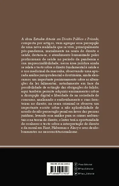A presente obra é composta por escritos atuais e apresentam clara solução para novos casos que surgiram na esfera do direito público e direito privado, e que se tornaram evidentes, principalmente em face de um novo normal, verificado pelo período pós-pandemia. Os textos são assinados por autores gabaritados, que buscam apresentar para o leitor, o que de melhor existe em sua área de atuação, sempre apresentando um posicionamento firme e atual, em face dos problemas relatados.