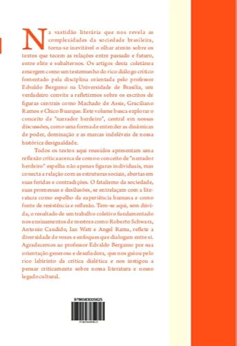 Os artigos desta coletânea emergem como um testemunho do rico diálogo crítico fomentado pela disciplina orientada pelo professor Edvaldo Bergamo na Universidade de Brasília, um verdadeiro convite a refletirmos sobre os escritos de figuras centrais como Machado de Assis, Graciliano Ramos e Chico Buarque. Este volume busca explorar o conceito de “narrador herdeiro”, central em nossas discussões, como uma forma de entender as dinâmicas de poder, dominação e as marcas indeléveis de nossa histórica desigualdade. Todos os textos aqui reunidos apresentam uma reflexão crítica acerca de como o conceito de “narrador herdeiro” espelha não apenas figuras individuais, mas conecta a relação com as estruturas sociais, abertas em suas feridas e contradições. O fatalismo da sociedade, suas promessas e desilusões, se entrelaçam com a literatura como espelho da experiência humana e como fonte de resistência e reflexão. Tem-se aqui, sem dúvida, o resultado de um trabalho coletivo fundamentado nos ensinamentos de mestres como Roberto Schwarz, Antonio Candido, Ian Watt e Angel Rama, reflete a diversidade de vozes e enfoques que dialogam entre si.