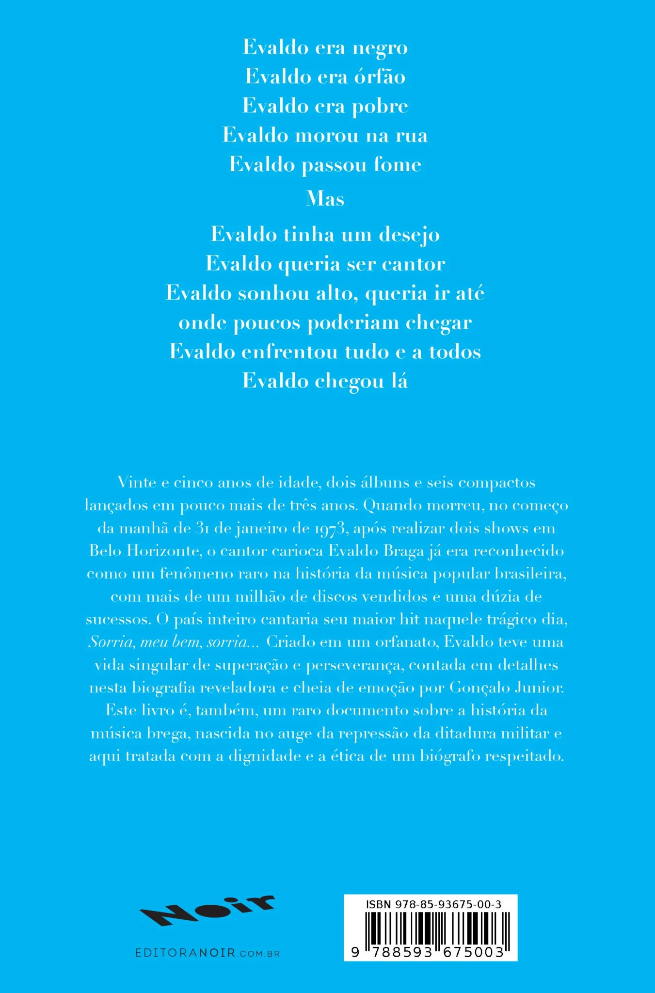 Em apenas três anos de carreira, entre 1970 e 1973, o cantor Evaldo Braga gravou dois LPs. Conseguiu emplacar sucessos como A Cruz que Carrego, Mentira, Eu Não Sou Lixo e seu maior hit, Sorria, Sorria. Aos 25 anos, porém, ele morreu em um acidente de carro. Este livro revelador conta a intensa vida do astro, a partir de dezenas de entrevistas e minuciosa pesquisa, e compõe um retrato sem preconceito do nascimento da música brega. Um livro que já nasceu indispensável.