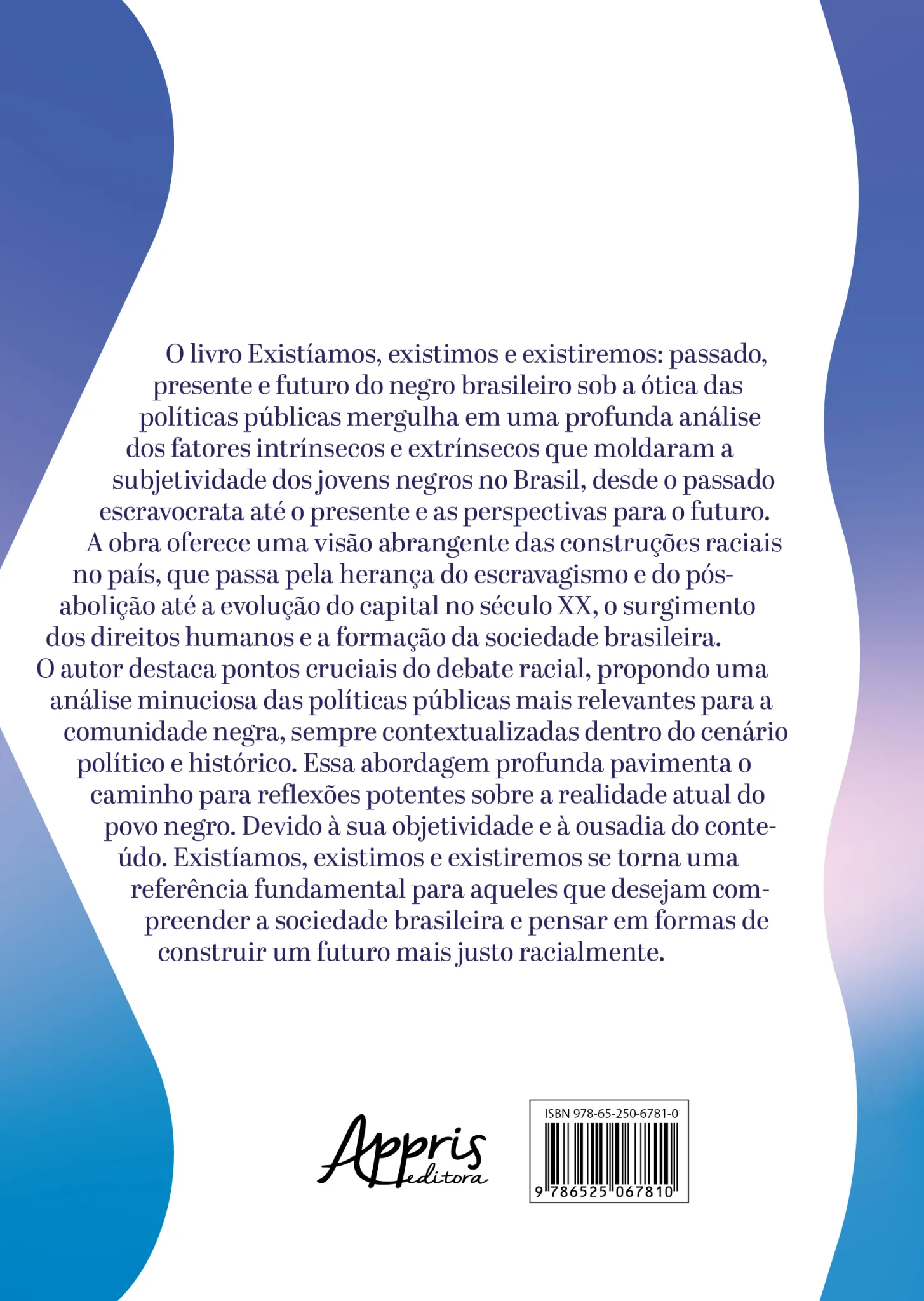 O livro Existíamos, existimos e existiremos: passado, presente e futuro do negro brasileiro sob a ótica das políticas públicas mergulha em uma profunda análise dos fatores intrínsecos e extrínsecos que moldaram a subjetividade dos jovens negros no Brasil, desde o passado escravocrata até o presente e as perspectivas para o futuro.