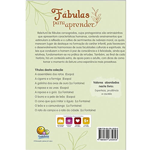 A coleção Fábulas para aprender é um material eficaz para crianças e adultos. Os protagonistas destas breves histórias são animaizinhos que apresentam características humanas, contendo ensinamentos que estimulam a reflexão dos pequenos leitores. Como conteúdo extra, ao final de cada história, há um material de apoio para os adultos com dicas de como tornar esta experiência ainda mais proveitosa.