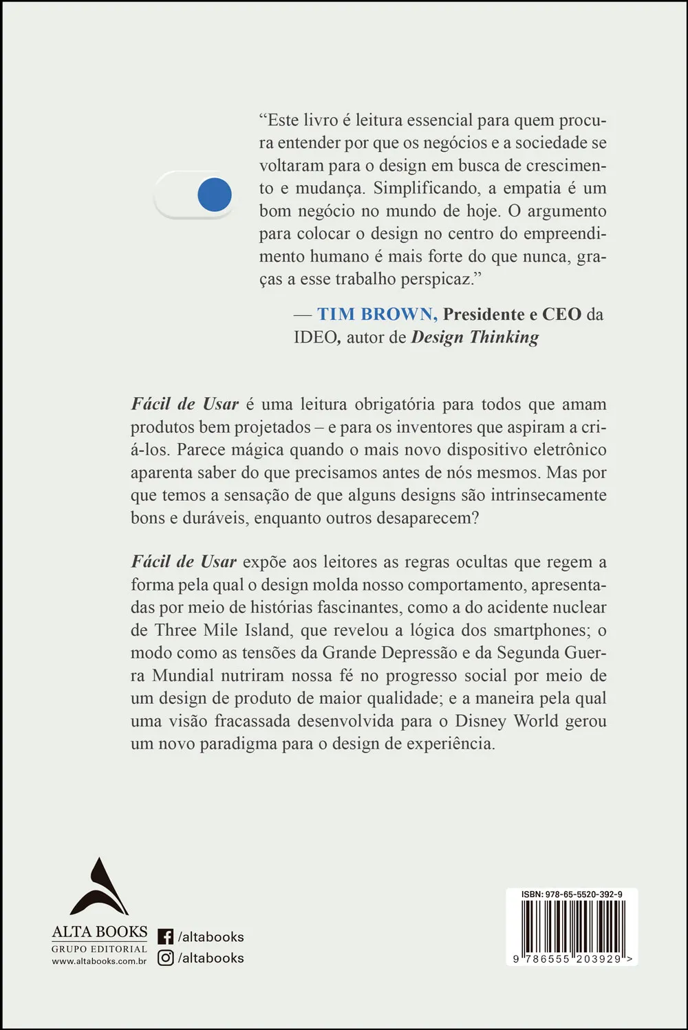 Fácil de Usar é uma leitura obrigatória para todos que amam produtos bem projetados – e para os inventores que aspiram a criá-los. Parece mágica quando o mais novo dispositivo eletrônico aparenta saber do que precisamos antes de nós mesmos. Mas por que temos a sensação de que alguns designs são intrinsecamente bons e duráveis, enquanto outros desaparecem?