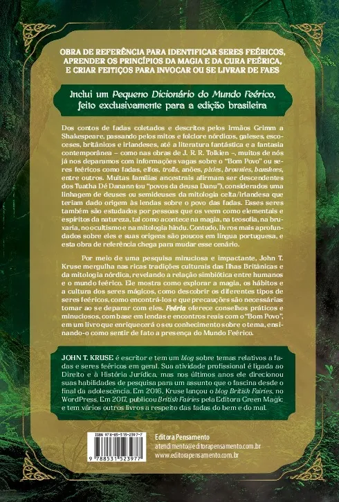 Feéria oferece conselhos práticos e minuciosos, com base em lendas e encontros reais com o “Bom Povo”, em um livro que enriquecerá o seu conhecimento sobre o tema, ensinando-o como sentir de fato a presença do Mundo Feérico.