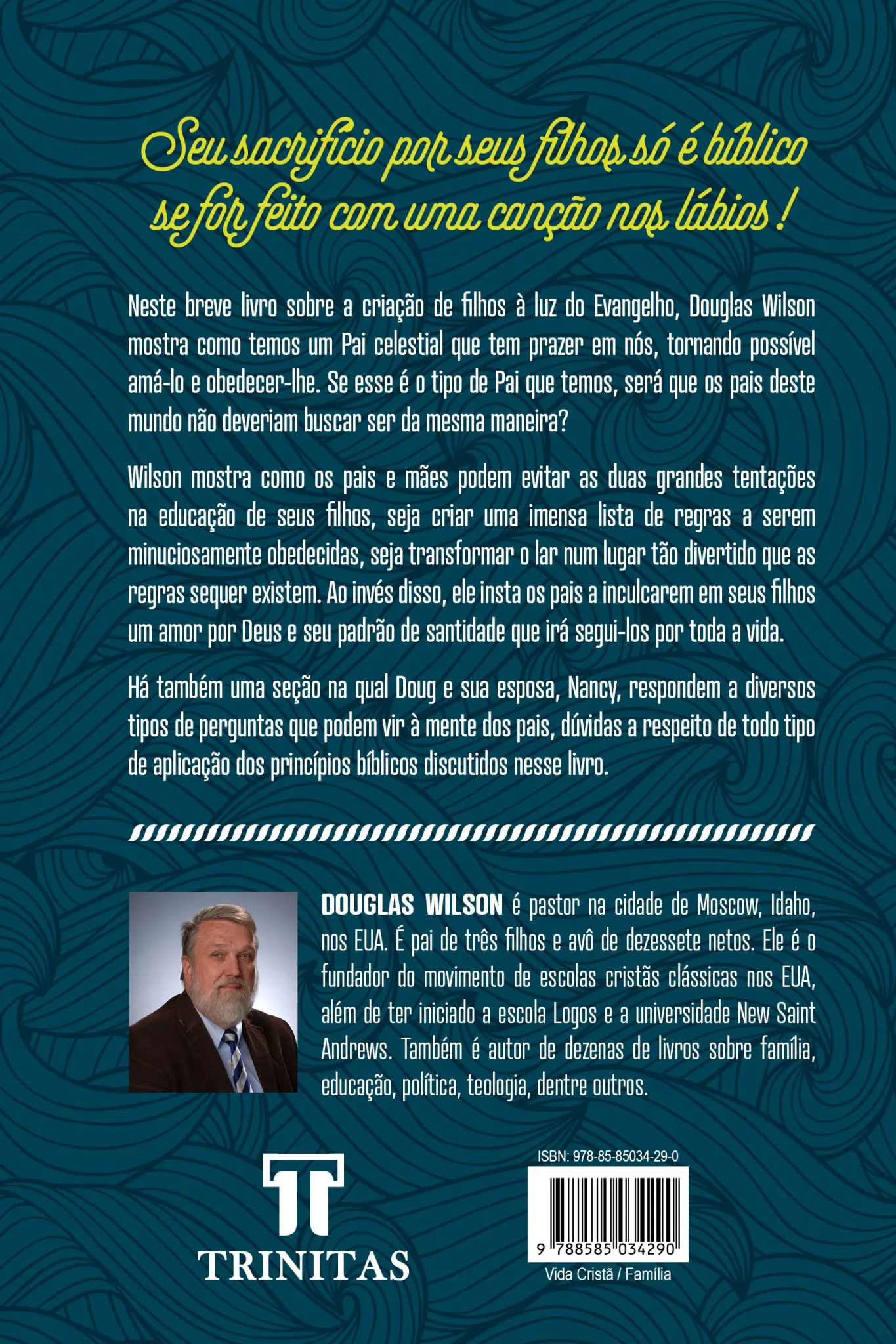 Neste breve livro sobre a criação de filhos à luz do Evangelho, Douglas Wilson mostra como temos um Pai celestial que tem prazer em nós, tornando possível amá-lo e obedecer-lhe. Se esse é o tipo de Pai que temos, será que os pais deste mundo não deveriam buscar ser da mesma maneira?