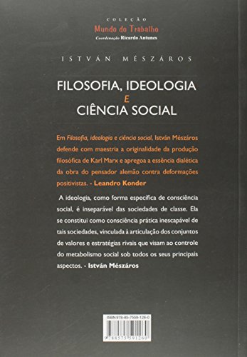 Sétimo livro do filósofo húngaro István Mészáros publicado pela Boitempo Editorial, Filosofia, ideologia e ciência social traz ensaios que são voltados para temas e problemáticas distintas como filosofia, análise literária e ciências sociais, explorados de maneira rica e complexa, a partir de seus contextos históricos e de uma perspectiva crítica. A preocupação fundamental de Mészáros nesta obra é o esclarecimento do poder da ideologia e de seu papel no processo dos ajustes estruturais. Segundo o autor, as condições de dominação estão estreitamente ligadas à intervenção de poderosos fatores de ordem ideológica. Esta questão perpassa o livro, atuando como elo entre os textos que tratam de assuntos diversos. A partir da análise de autores como Weber, Parsons, Keynes, Kant e Hegel, Mészáros procura identificar as configurações ideológicas presentes nas diferentes expressões de conscientização do conflito social. Trata-se de um esforço de investigação das características essenciais das várias formas de ideologia – religião, política e arte – rejeitando assim um suposto confronto positivista entre ciência e ideologia. Originalmente publicado em 1986, a reedição de Filosofia, ideologia e ciência social faz parte da Coleção Mundo do Trabalho, tem tradução de Ester Vaisman e orelha de Ruy Braga.