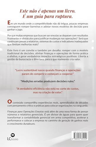 Este livro é um convite e também um desafio: romper com o modelo tradicional de decisões, alinhar finanças e operações de forma prática e efetiva, e gerar verdadeiros impactos estratégicos positivos. Liberta a gestão da burocracia e direciona para o que realmente cria valor.