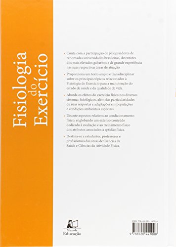 O livro Fisiologia do Exercício, coordenado pelos professores Marilia dos Santos Andrade, da Escola Paulista de Medicina da Universidade Federal de São Paulo (EPM-Unifesp), e Claudio Andre Barbosa de Lira, da Universidade Federal de Goiás (UFG) abarca uma visão abrangente e interdisciplinar sobre a Fisiologia do Exercício. Destinado aos estudantes, professores e profissionais das áreas de Ciências da Saúde e Ciências da Atividade Física, conta com a autoria de profissionais de renomadas universidades brasileiras, detentores dos mais elevados gabaritos e de grande experiência nas respectivas áreas de atuação. A obra foi preparada com minucioso cuidado e aborda os efeitos do exercício físico nos diversos sistemas fisiológicos, além das particularidades de suas respostas e adaptações em populações e condições ambientais especiais. Também discute aspectos relativos ao condicionamento físico, por meio de um extenso conteúdo dedicado à avaliação e ao treinamento físico dos atributos associados à aptidão física. Com a característica de ser detalhado, esse livro certamente potencializará o estudo, tornando este livro uma ferramenta de referência para os professores não somente da disciplina de Fisiologia do Exercício mas também de disciplinas como Bioquímica do Exercício, Avaliação da Aptidão Física e Prescrição de Exercício para Pessoas com Necessidades Especiais.