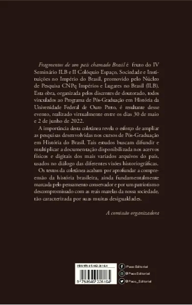 A obra, organizada por doutorandos(as) de História, é fruto do IV Seminário Impérios e Lugares do Brasil e II Colóquio Espaço, Sociedade e Instituições no Império do Brasil e visa a difundir as pesquisas realizadas, aprofundando a compreensão da história brasileira.