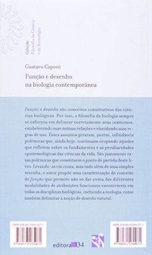 Gustavo Caponi investiga neste novo livro a controvérsia que envolve os conceitos de “função”, “adaptação” e “desenho” no campo da biologia. O autor propõe uma caracterização do conceito de função que permite não só dar conta das diferentes modalidades de atribuições funcionais encontráveis em todas as disciplinas biológicas, incluindo a ecologia, como também delimitar a noção de desenho natural.
