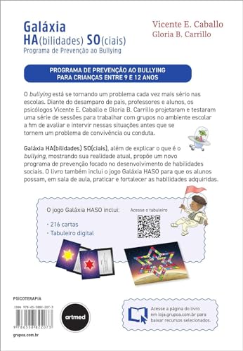 Galáxia HA(bilidades) SO(ciais), além de explicar o que é o bullying, mostrando sua realidade atual, propõe um novo programa de prevenção focado no desenvolvimento de habilidades sociais. O livro também inclui o jogo Galáxia HASO para que os alunos possam, em sala de aula, praticar e fortalecer as habilidades adquiridas.
