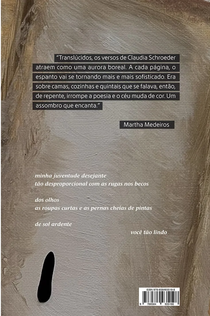 Este é o mais recente livro de Claudia Schroeder, que é autora também de Leia-me toda (Dublinense, 2010, terceiro lugar no Prêmio Biblioteca Nacional); As partes nuas (Francisco Alves, 2021, finalista do Prêmio Ages e Academia Rio-Grandenses de Letras) e As línguas são para outras coisas (Taverna, 2022).Em 2023 ela foi uma das contempladas no Prêmio Carolina Maria de Jesus, do Ministério da Cultura, com o livro ainda inédito Dentro da roupa, um corpo. No mesmo ano, criou o Podcast/Videocast “Eles olham pra elas”, que discute machismo e equidade de gênero.