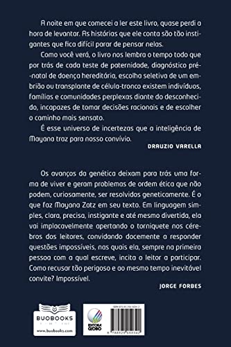 O que você faria se pudesse escolher o sexo do seu filho? Impedir que ele tenha uma doença grave selecionando seus genes – mesmo que seja depois de adulto? O que os avanços da engenharia genética nos reserva para o futuro? Até onde podemos – ou queremos ir – com a escolha de embriões, célulastronco, testes de DNA, clonagem? São questões modernas que mais cedo ou mais tarde baterão à nossa porta, e que a bióloga e geneticista brasileira Mayana Zatz procura levantar nesse livro original e humano – “GenÉtica: escolhas que nossos avós não faziam” (assim mesmo, com “e” maiúsculo, para chamar a atenção para a outra face da evolução da ciência). Mayana, que é uma pesquisadora da USP conhecida internacionalmente, e participou ativamente da aprovação pelo Congresso Nacional das pesquisas com célulastronco embrionárias, traz um pouco de sua experiência para o cotidiano das pessoas. As histórias por ela relatadas poderiam ocorrer com qualquer um de nós – porém, no estágio atual do nosso conhecimento, nossas respostas nem sempre serão as mesmas. “Este livro é uma bomba em todas as certezas acomodadas, ele coloca problemas, página a página, frente aos quais nossa bulas de bem viver entram em parafuso.A Genética está para o século XXI assim como a Física esteve para o século XX. Os avanços da Genética deixam para trás uma forma de viver e geram problemas de ordem ética que não podem, curiosamente, ser resolvidos geneticamente.” É o que diz o médico e psiquiatra Jorge Forbe no prefácio. Como observa a especialista em Biodireito, Adriana Diaféria, que também comenta a publicação: “O livro nos mostra claramente diversas questões não só da relação do ser humano consigo mesmo, mas principalmente na ruptura de dogmas como o caso da reprodução a partir de células somáticas e a manipulação, congelamento e o descarte de embriões, dentre tantos outros , retomando a necessidade de se revitalizar as mais tradicionais questões filosóficas. Questões como: O que é a vida? O que somos? O que desejamos ser? estão presentes nessa discussão. “ A importância de “GenÉtica: escolhas que nossos avós não faziam” é diretamente proporcional à relevância e às implicações dos assuntos que o livro aborda, e ao impacto potencial de suas consequências para nossas vidas, tanto em termos práticos quanto de visão de mundo. Da lista de seus capítulos emerge um quadro sinótico, senão de um admirável mundo novo, de uma parte tão admirável quanto nova de nosso próprio mundo: paternidade ou o direito de não saber; confidencialidade; diagnóstico prénatal; gêmeos, trigêmeos e mais; menino, menina e o que você faria se pudesse escolher; embriões salvadores; projeto Genoma; loira ou morena, alta ou baixa, atleta ou cientista; pesquisas com célulastronco; bancos de cordão umbilical; testes de DNA na farmácia; clonagem e o que nos reserva o futuro. E já nos envolve o presente, numa discussão que implica, acima de tudo, em escolhas. Escolhas culturais, escolhas políticas, escolhas jurídicas, escolhas familiares, escolhas pessoais. Em todo caso, escolhas obrigatórias. De um tipo que nossos avós não podiam fazer, e que nós não poderemos evitar. Melhor começar a se informar. Com capítulos curtos em linguagem clara e até mesmo divertida (pois as questões já são complexas o suficiente), o livro oferece ainda duas preciosas ferramentas adicionais: um verdadeiro minidicionário com os principais termos e expressões envolvidos (“Para entender melhor”) e uma lista de sites úteis (além de bibliografia especializada). E conta com uma apresentação de Dráuzio Varela, que não esconde seu entusiasmo com a leitura: “A noite em que comecei a ler o livro, quase perdi a hora de levantar.As histórias que ele conta são tão instigantes que fica difícil parar de pensar nelas.”