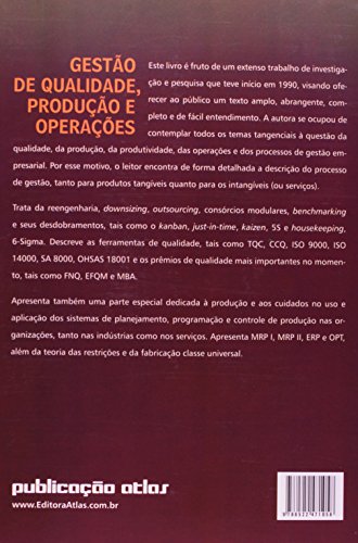 Este livro é fruto de um extenso trabalho de investigação e pesquisa que teve início em 1990, visando oferecer ao público um texto amplo, abrangente, completo e de fácil entendimento. A autora se ocupou de contemplar todos os temas tangenciais à questão da qualidade, da produção, da produtividade, das operações e dos processos de gestão empresarial. Por esse motivo, o leitor encontra de forma detalhada a descrição do processo de gestão, tanto para produtos tangíveis quanto para os intangíveis (ou serviços).