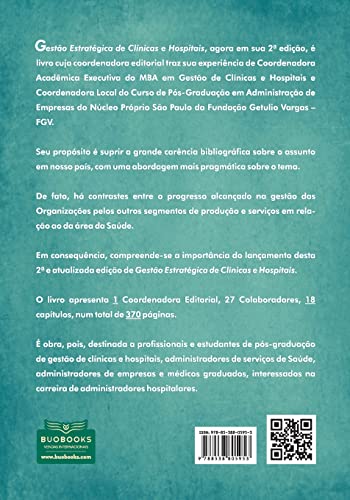 “Gestão Estratégica de Clínicas e Hospitais”, agora em sua 2ª edição, é livro cuja coordenadora editorial traz sua experiência de Coordenadora Acadêmica Executiva do MBA em Gestão de Clínicas e Hospitais e Coordenadora Local do Curso de Pós-Graduação em Administração de Empresas do Núcleo Próprio São Paulo da Fundação Getulio Vargas – FGV.