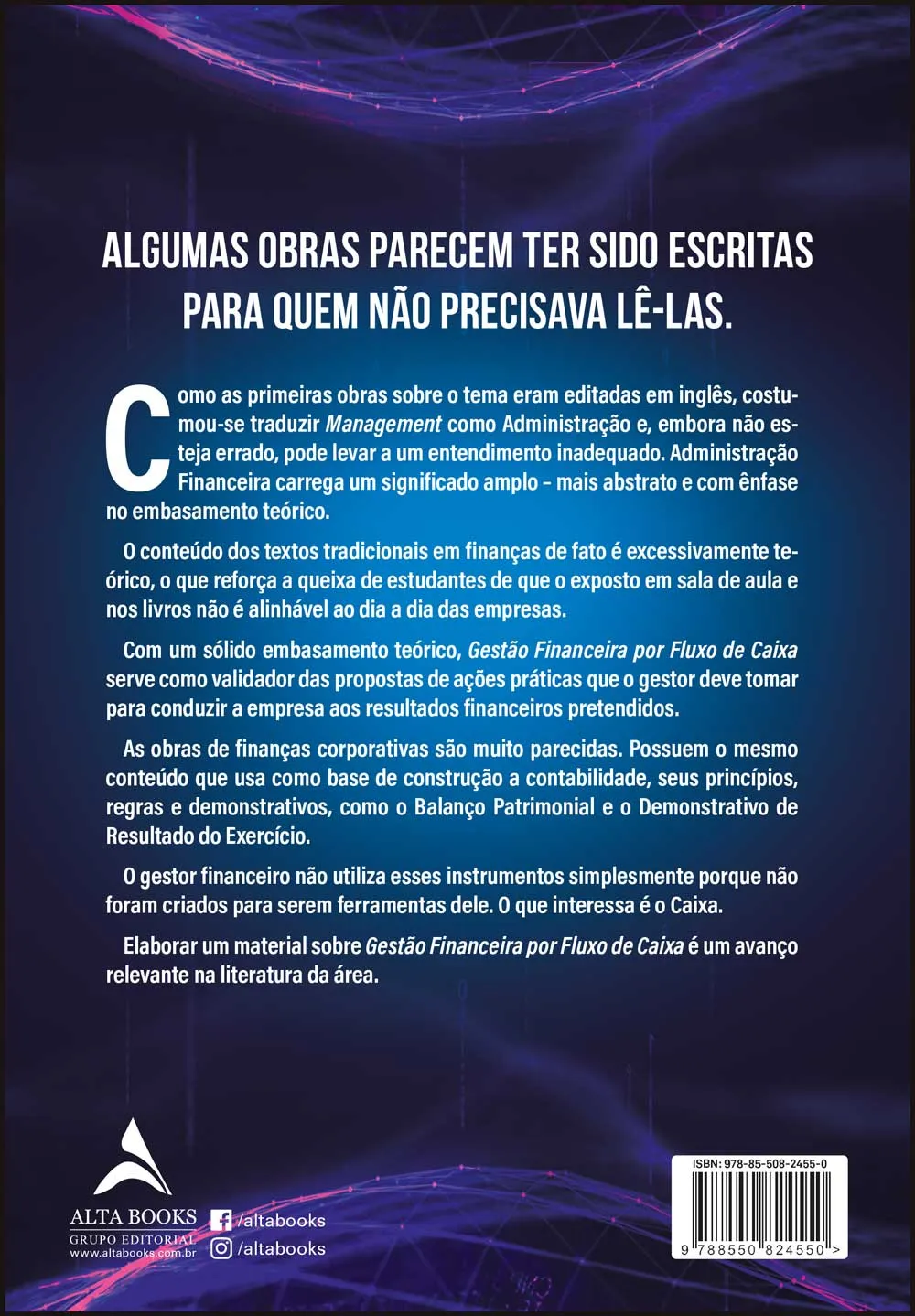 O esforço colocado neste livro foi para que servisse como um guia para quem não conhece e quer entender a atuação na área financeira, mostrando cada passo do processo da forma mais prática possível. Construir todo um processo de gestão financeira com a abordagem de fluxo de caixa como guia dá uma nova perspectiva para o gestor. As decisões e seus efeitos passam a fazer mais sentido. Experimente trilhar esse caminho.