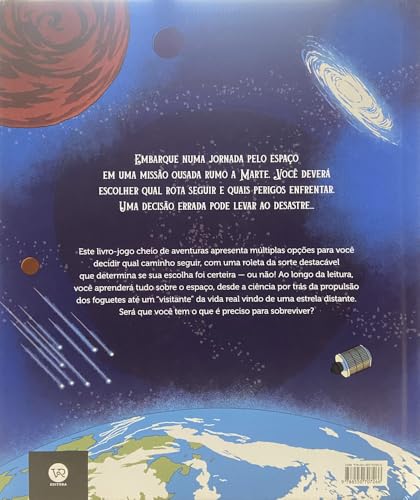 Este livro-jogo cheio de aventuras apresenta múltiplas opções para você decidir qual caminho seguir, com uma roleta da sorte destacável que determina se sua escolha foi certeira — ou não! Ao longo da leitura, você aprenderá tudo sobre o espaço, desde a ciência por trás da propulsão dos foguetes até um “visitante” da vida real vindo de uma estrela distante. Será que você tem o que é preciso para sobreviver?