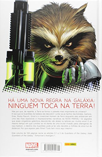 Mas por que, de repente, a Terra se tornou o planeta mais importante do universo? É isso que os Guardiões da Galáxia vão descobrir! Junte-se ao Senhor das Estrelas, Gamora, Drax, Rocky Racum, Groot e o invencível Homem de Ferro enquanto eles embarcam em uma das mais explosivas e impressionantes narrativas da NOVA MARVEL! Os segredos que esses vingadores galácticos descobrirão vão abalar os leitores por muitos anos! E ao mesmo tempo em que Londres se vê diante de uma brutal invasão pelos alienígenas da raça badoon, o destino dos Guardiões pode já ter sido decidido há milhões de anoz-luz de distância! As aventuras da equipe que explodiu nos cinemas têm início aqui! Este volume de 144 páginas reúne as edições 0.1 a 3 de Guardians of the Galaxy, mais Guardians of the Galaxy: Tomorrow’s Avengers 1.