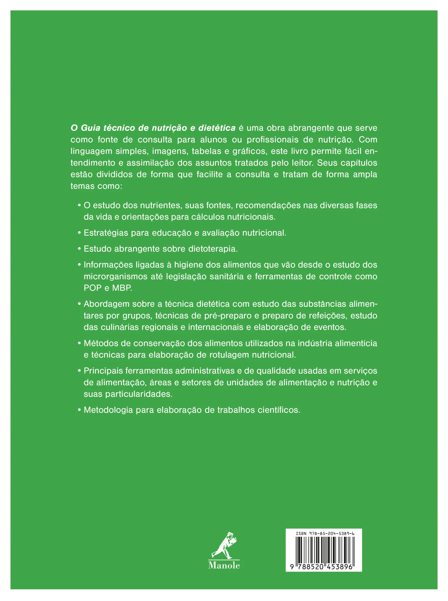 É possível desta forma verificar após breve apresentação a utilidade deste livro que funciona realmente como um guia com informações técnicas para o profissional de nutrição e dietética em suas diversas áreas de atuação, visto que as áreas de estudo se complementam durante o exercício profissional. Assim serve ao estudante e profissionais da área, como instrumento de apoio didático e fonte de informações técnicas, no exercício de sua profissão, facilitando a consulta de forma rápida, confiável e precisa.