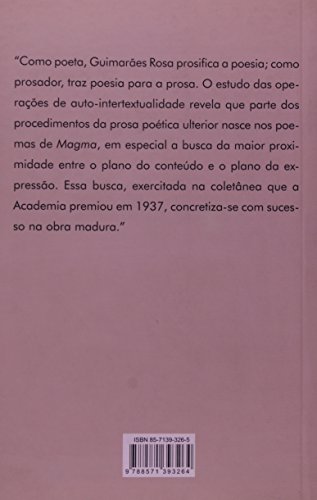 Apesar de ter ganho o prêmio de poesia da Academia Brasileira de Letras em 1937, Magma, de João Guimarães Rosa, ficou inédito, por vontade do autor, até 1997, quando foi publicado postumamente. Mesmo reconhecendo, como o próprio Rosa, o estatuto de obra menor dessa única incursão do magistral autor de Grande sertão: veredas no terreno da lírica, Maria Célia Leonel, professora da Unesp, câmpus de Araraquara, percebeu e pôs-se a estudar, de maneira cuidadosa e original, a importância dos poemas de Magma na germinação da prosa poética do ficcionista, sobretudo de Sagarana, sua primeira publicação.