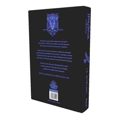 CORVINAL: Inteligência, Aprendizado, Sabedoria. Harry Potter e o Cálice de Fogo personalizado da Casa Corvinal em capa dura, com pintura trilateral e fitilho. Os livros dessa edição trazem conteúdo editorial extra sobre cada casa, perfil de J.K. Rowling e curiosidades. Harry Potter, agora com 14 anos, sente sua cicatriz arder durante um sonho bastante real com Lord Voldemort, o qual não consegue esquecer; três dias depois, já em companhia da família Weasley, com quem foi passar o restante das férias, na final da Copa Mundial de Quadribol, os Comensais da Morte, seguidores de Você-Sabe-Quem, reaparecem e alguém conjura a Marca Negra – o sinal de Lord Voldemort – projetando-a no céu pela primeira vez em 13 anos, causando pânico na comunidade mágica. Será que o terrível bruxo está voltando? Tudo indica que sim… Em Harry Potter e o Cálice de fogo, o ano letivo já começa agitado. Harry volta para a Escola de Magia e Bruxaria de Hogwarts para cursar a quarta série. Acontecimentos inesperados – como, por exemplo, a presença de um novo professor de Defesa contra as Artes das Trevas e um evento extraordinário promovido na escola – alvoroçam os ânimos dos estudantes. Para surpresa de todos não haverá a tradicional Copa Anual de Quadribol entre Casas. Será substituída pelo Torneio Tribuxo, uma competição amistosa entre as três maiores escolas européias de bruxaria ― Hogwarts, Beauxbatons e Durmstrang ― que não se realizava havia um século. A competição é dividida em tarefas, cuja finalidade é testar a coragem, o poder de dedução, a perícia em magia e a capacidade de enfrentar o perigo dos campeões. Liderados pelo professor Dumbledore, os alunos de Hogwarts terão de demonstrar as habilidades mágicas e não-mágicas que vêm adquirindo ao longo de suas vidas. Apesar de alunos menores de 17 anos não poderem se inscrever no Torneio, inexplicavelmente Harry é escolhido pelo Cálice de Fogo, um grande copo de madeira toscamente talhado cheio até a borda com chamas branco-azuladas, para competir como um dos campeões de Hogwarts. Tendo a seu lado os fiéis amigos Rony Weasley, Hermione Granger e agora também o seu padrinho, o bruxo Sirius Black, que fugiu de Azkaban no ano anterior, o menino feiticeiro tentará escapar mais uma vez das armadilhas de Lord Voldemort. Além de todos os desafios, há feitiços a serem aprendidos, poções a serem preparadas e aulas de Adivinhação, entre outras, a serem assistidas, Harry terá que lidar ainda com os problemas comuns da adolescência: amor, amizade, aceitação e rejeição. USE COM ORGULHO AS CORES DA SUA CASA. Edição limitada de colecionador.