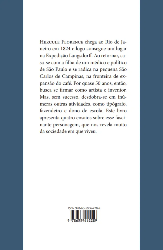 O personagem que escolheu também se caracteriza pelos trânsitos. Hercule Florence, niçardo, monegasco, francês, italiano, brasileiro, autodenominado “O novo Robinson”, circulou entre dois continentes como desenhista, pintor, tipógrafo, inventor, comerciante, fazendeiro e um pensador de seu tempo, em busca do conhecimento e da glória.