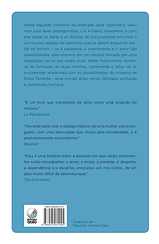 Fios condutores da história, a atração irresistível e a influência que Lila exerce sobre a narradora Lenu vão dando contorno a experiências vividas com outros personagens. Elena Ferrante, pseudônimo da consagrada escritora italiana de A amiga genial, lançará no Brasil, pela Biblioteca Azul, o segundo volume da tetralogia napolitana. Recentemente indicada ao Man Booker Prize 2016 por Story of the Lost Child, último livro da série, a autora, firme na decisão de não revelar sua real identidade, se tornou um fenômeno literário mundial após a publicação, em 2011, do primeiro dos quatro romances que formam a saga ambientada na Nápoles do pós-guerra.Best-sellers nos Estados Unidos e na Europa, as obras de Ferrante contam a história da forte ligação das amigas Elena Greco, narradora da história, e de Rafaella Cerullo, mais conhecida como Lila, percorrendo todas as fases da vida das duas, nascidas e crescidas no subúrbio de Nápoles, nos anos de 1950. Após o repentino desaparecimento de Lila, aos 66 anos, Lenu repassa a vida da amiga, explorando os ecos desta em sua própria existência.Envolvente e com a costumeira cadência impecável, a narrativa de História do novo sobrenome dá espaço para reflexões profundas a respeito da subjetividade, da sexualidade, do amor e, sobretudo, do papel imposto à jovem mulher em meados do século XX ― contraponto construído entre as duas personagens centrais, às voltas com as restritas possibilidades de escolha, mas ao mesmo tempo surpreendidas pelas descobertas acerca de suas próprias capacidades e seus limites. Lila, que teve os estudos interrompidos por questões familiares – muito cedo teve que trabalhar com o pai e o irmão, se casou cedo. Lenu, por sua vez, consegue se desvencilhar do destino certo das moças da época e não se casa, mas passa a se preparar para a faculdade, levando consigo as marcas definitivas da complexa relação de amizade com Lila – admiração misturada a identificação.Os personagens vão ganhando espaço na história, não apenas nos acontecimentos cotidianos relatados por Lenu, como também nos comentários subjetivos da narradora. Lenu, sem poupar de nada o leitor, escancara cenas de casamento, de adultério, de supostas e reais traições dentro de uma amizade, mas também os pequenos momentos em que parece acertar as contas com ela mesma.