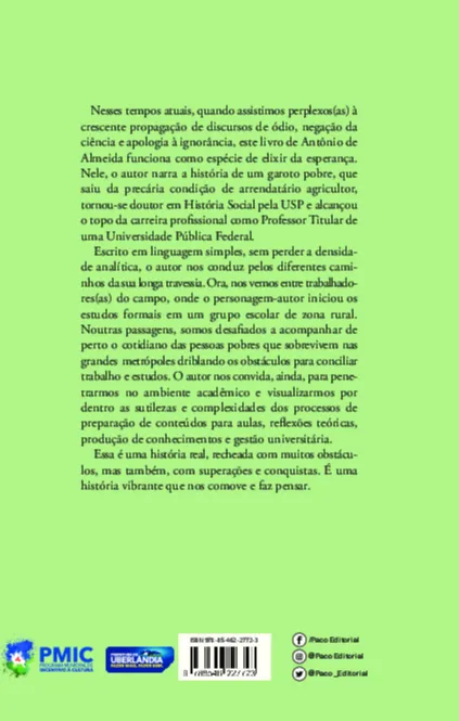 o autor narra a história de um garoto pobre, que saiu da precária condição de arrendatário agricultor, tornou-se doutor em História Social pela USP e alcançou