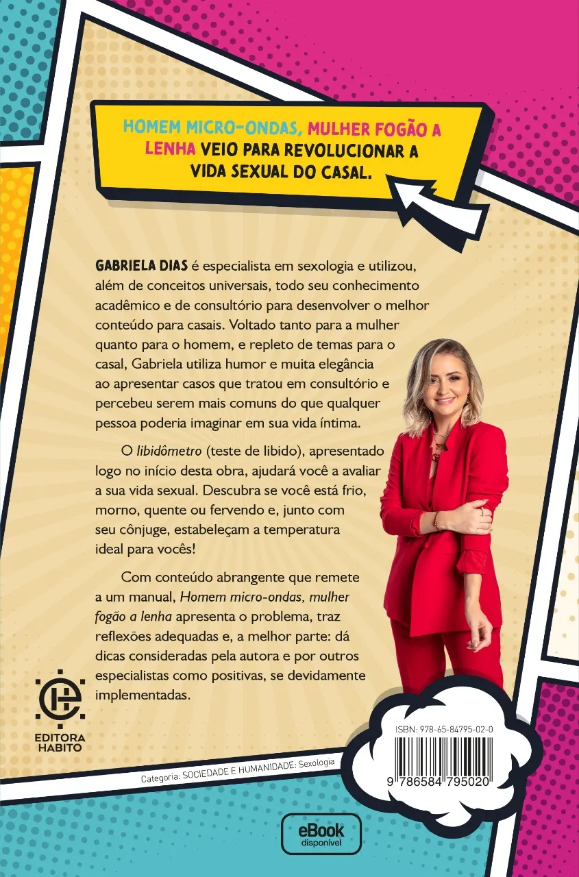 O libidômetro (teste de libido), apresentado logo no início desta obra, ajudará você a avaliar a sua vida sexual. Descubra se você está frio, morno, quente ou fervendo e, junto com seu cônjuge, estabeleçam a temperatura ideal para vocês! Com conteúdo abrangente que remete a um manual, Homem micro-ondas, mulher fogão a lenha apresenta o problema, traz reflexões adequadas e a melhor parte: dá dicas consideradas pela autora e por outros especialistas como positivas, se devidamente implementadas.