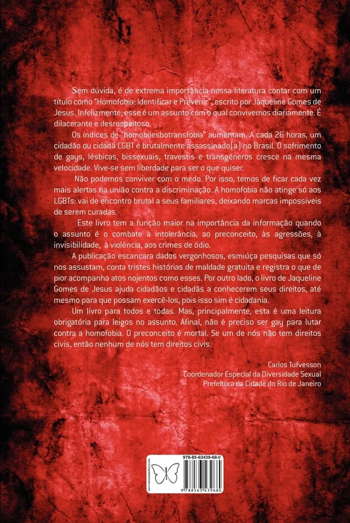 Um livro que vai além das denúncias. Analisa a situação; apresenta informações científicas acerca do fenômeno da homofobia; aprofunda conceitos correntes, esclarecendo, por exemplo, as especificidades de violações como a bifobia, a lesbofobia e a transfobia, que em geral são erroneamente confundidas com homofobia; e orienta como identificar e prevenir a discriminação contra pessoas em função da sua orientação sexual presumida ou identidade de gênero, a partir de literatura especializada e da experiência da autora como psicóloga, gestora de diversidade e ativista em direitos humanos. A obra foi escrita e orientada para a formação de professoras/es e demais educadoras/es, em espaços formais ou informais de educação para a cidadania.