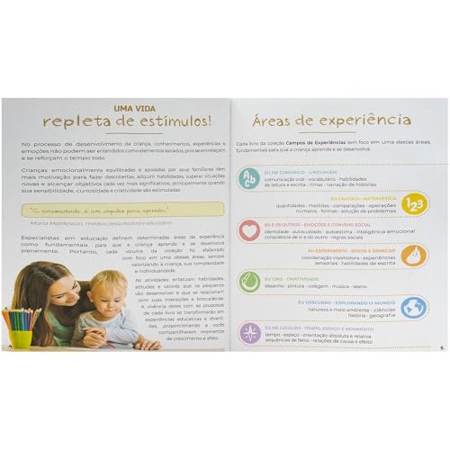 Na primeira infância, a criança desenvolve várias formas de se comunicar, de se expressar e de interagir. Ela também define sua identidade e cria vínculos afetivos mais fortes. Neste livro, a criança se divertirá com atividades que ajudam a explorar diferentes materiais e possibilidades de expressão, desenvolvendo as habilidades manuais, a coordenação motora, o senso estético, a empatia, a imaginação e a capacidade de solução de problemas. A expressão artística conecta o cognitivo e o afetivo da criança revelando-se naturalmente em suas brincadeiras. Ao pintar, traçar, modelar, jogar, cantar, dançar, fotografar e observar o mundo ao seu redor, ela se diverte e faz descobertas que impulsionam seu desenvolvimento.