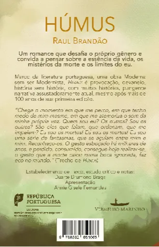 Marco da literatura portuguesa, uma obra moderna sem ser modernista, Húmus é provocação, devaneio, história sem história, com muitas histórias, pungente narrativa assustadoramente atual, mesmo após mais de 100 anos de sua primeira edição.